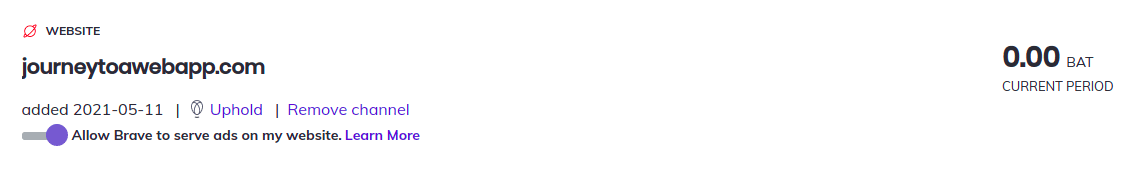 After connecting your wallet, you can choose which currency you’d like to be paid in. I like that you can get your rewards in different currencies without needing to convert BAT yourself. The selection of currencies is huge, also (using Uphold here)! You can choose to get your rewards in the big cryptos, such as BTC(Bitcoin), ETH(Ether) or LTC(Litecoin), or some lesser known, such as XEM(NEM). You can also choose stablecoins such as USDT or even fiat currencies like EUR.