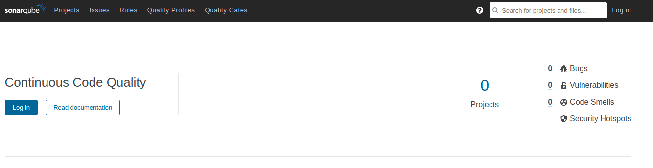 And then we can already move on to check out the software! For this, you go to your server address and the port it is opened on. In my case, it’s currently http://{site}:9001. Here we’ll be greeted by the SonarQube starting page.