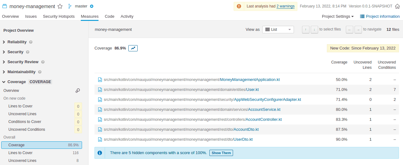 These results can mostly be ignored. However, when there are findings such as below, you may want to address them. In this case, there’s an entire endpoint that’s untested! For now, this is fine, as this requires the user entity to be added to the accounts still, as it doesn’t yet make sense. It does show up though, and that’s all that’s required. Even if I forget to add it, at some point, when I check back in with SonarQube, I will be reminded and add the test!