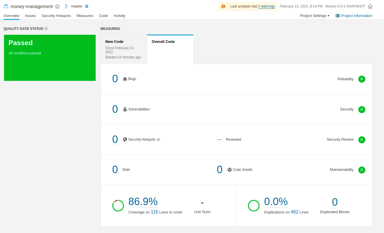 -Dsonar.login=${{ secrets.SONARQUBE_TOKEN }}Now, don’t forget to add the secrets into your Github project, and then push the changes! Wait for the pipeline to complete, and then check your results. (Of course, if you’re as impatient as me, you can follow along on the actions page and check the logs, where your additional step is in full display;) )